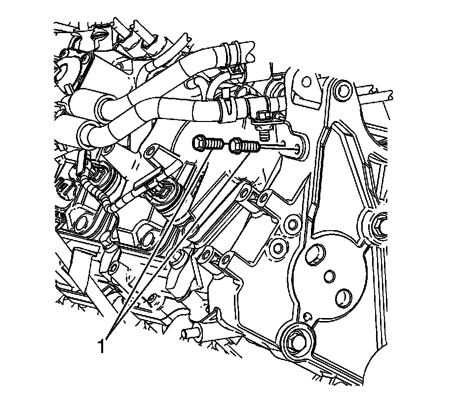 8. Remove the oil level indicator tube bracket bolts (1).