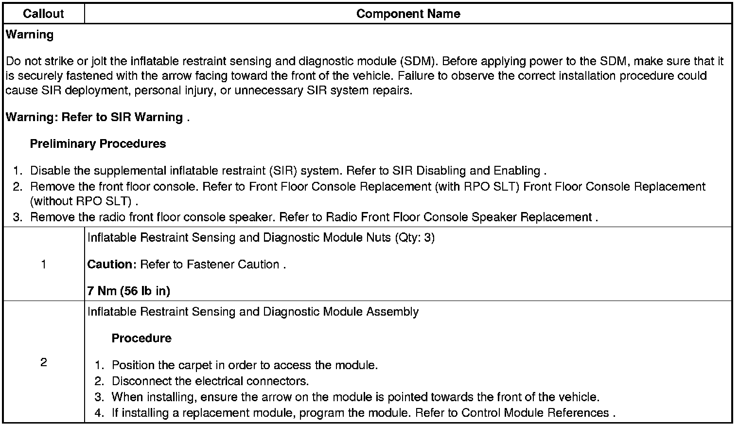 Inflatable Restraint Sensing and Diagnostic Module Replacement