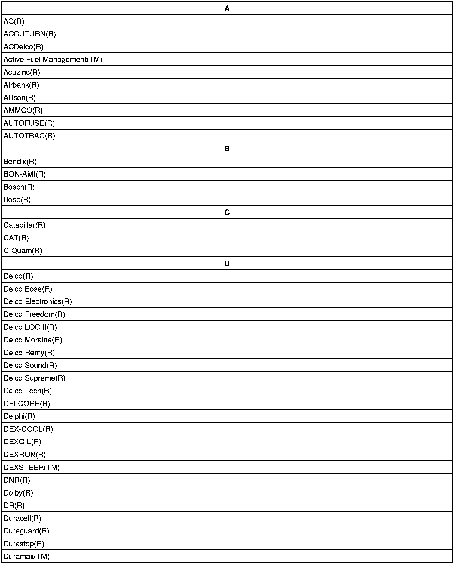 Listed below are Registered Trademarks ((R)) or Non-Registered Trademarks ((TM)) which may appear in this service manual.