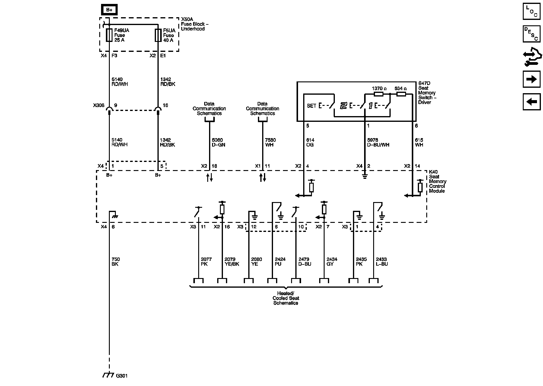 Module Power, Ground, Serial Data, and Memory/Heated Seat Switch (LTZ or SLT)