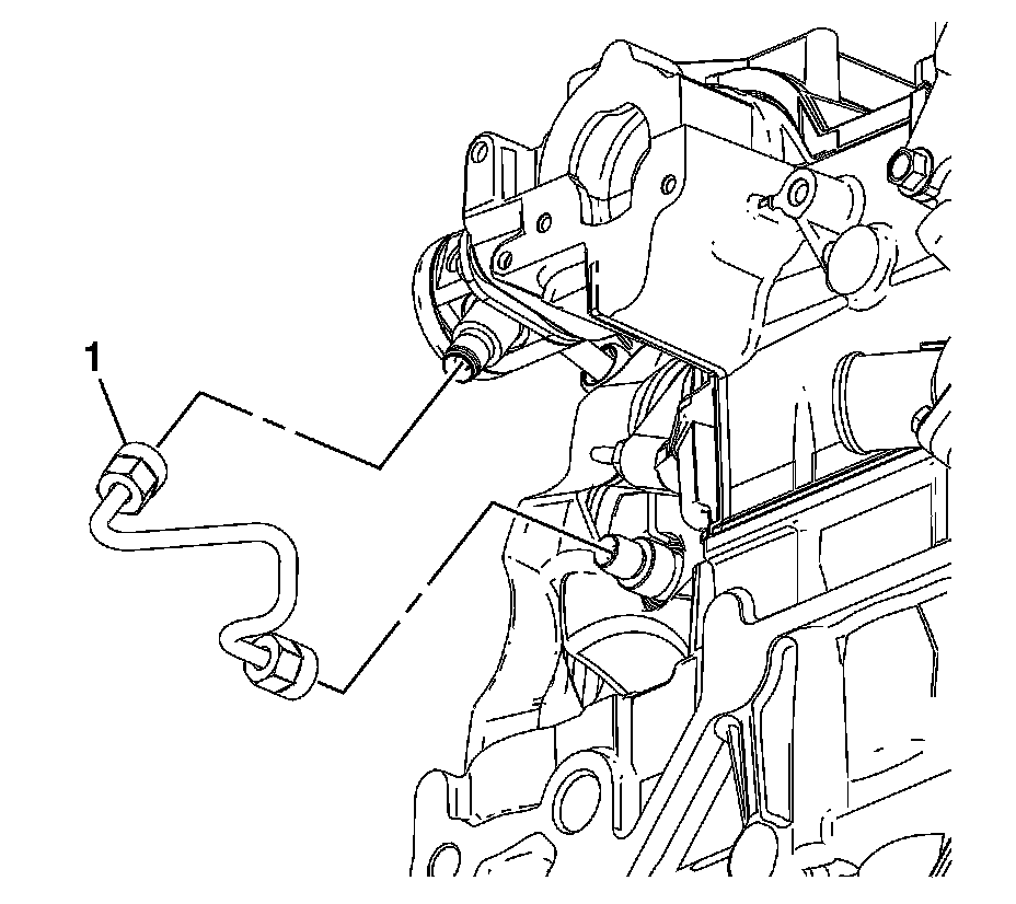 13. Install and hand-tighten both ends of the NEW high pressure fuel line (1). Tighten the high pressure fuel line fitting nuts to 30 Nm (22 lb ft).