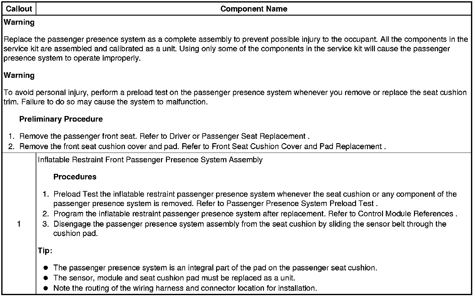 Inflatable Restraint Front Passenger Presence Sensor Replacement