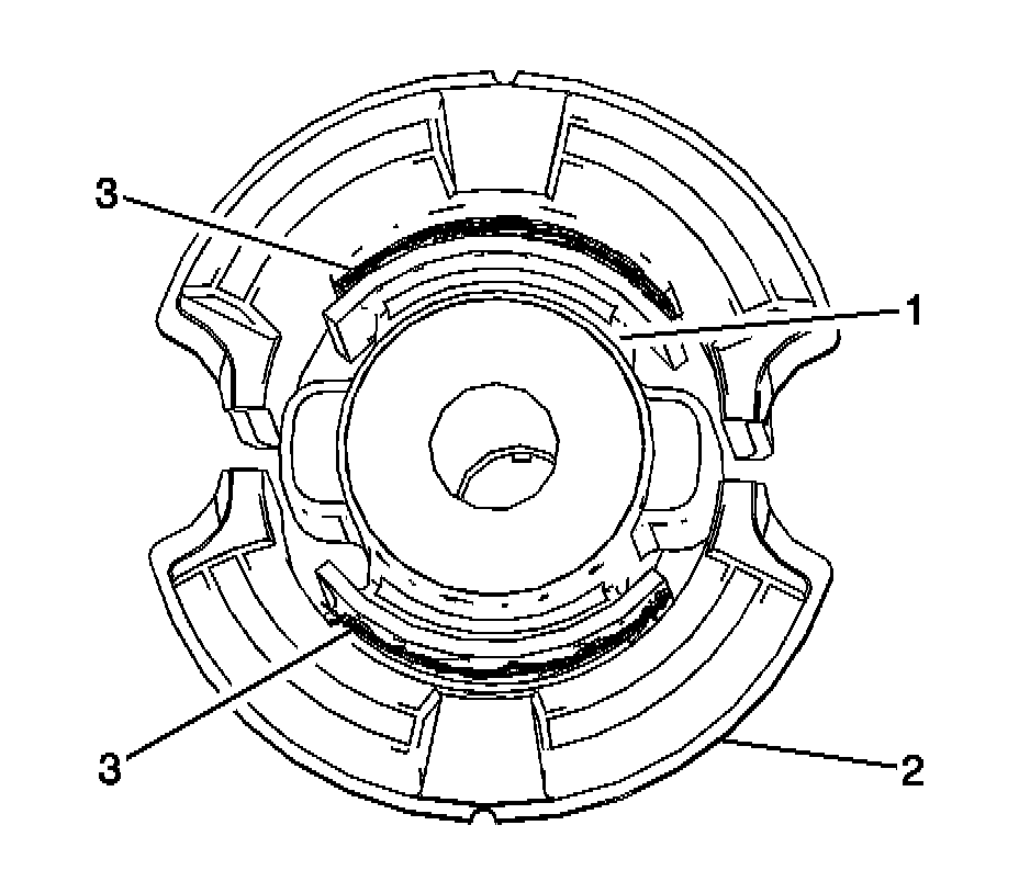 Note:For the removal of a rear frame insulator, tool cannot be used. Cut the insulator rubber along the interior surface (3) of the plastic outer can with a jigsaw to ease removal of the core.