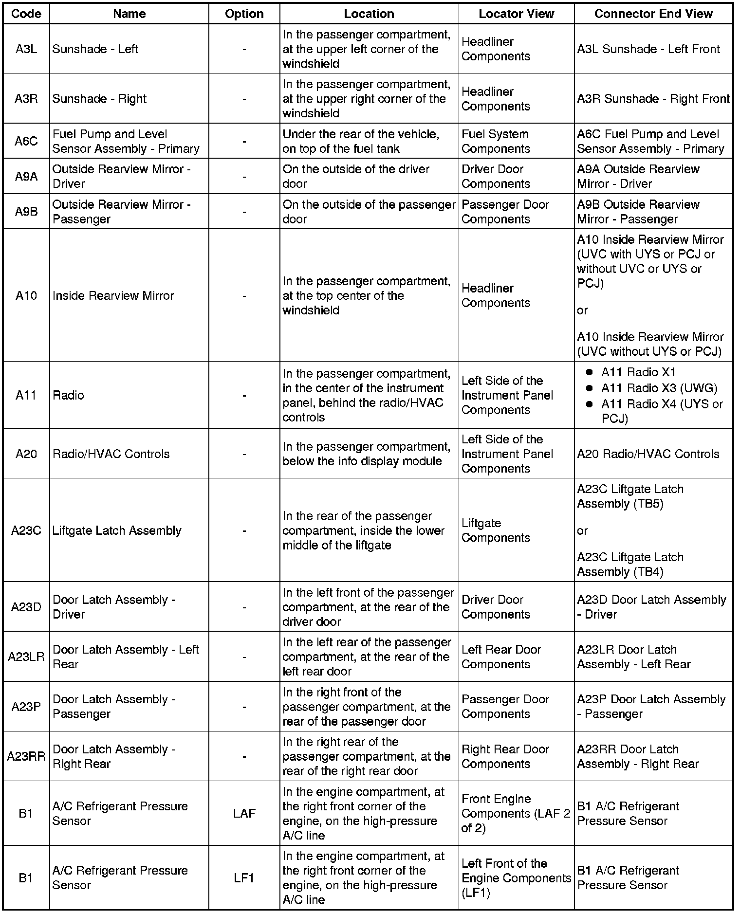 Master Electrical Component ListA3 - B1:
