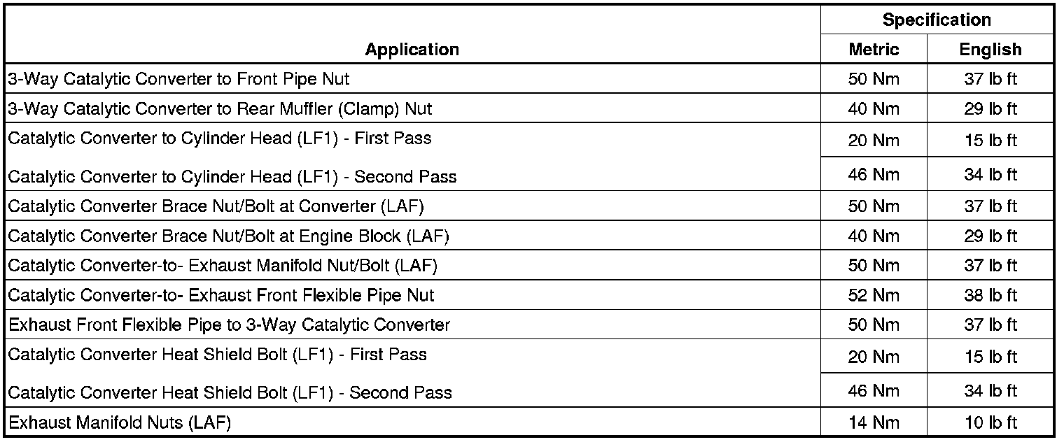 Fastener Tightening Specifications