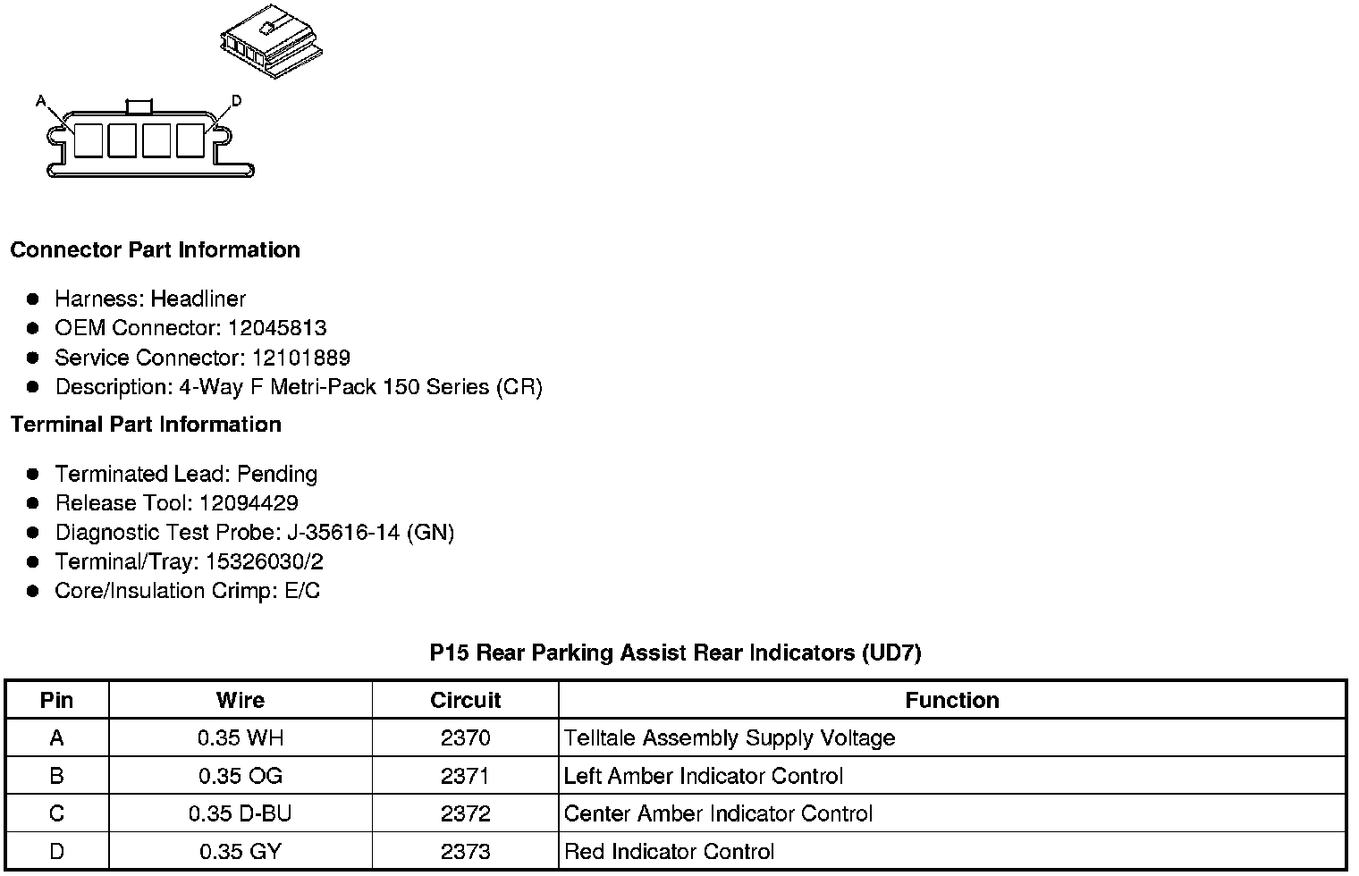 P15 Rear Parking Assist Rear Indicators (UD7)