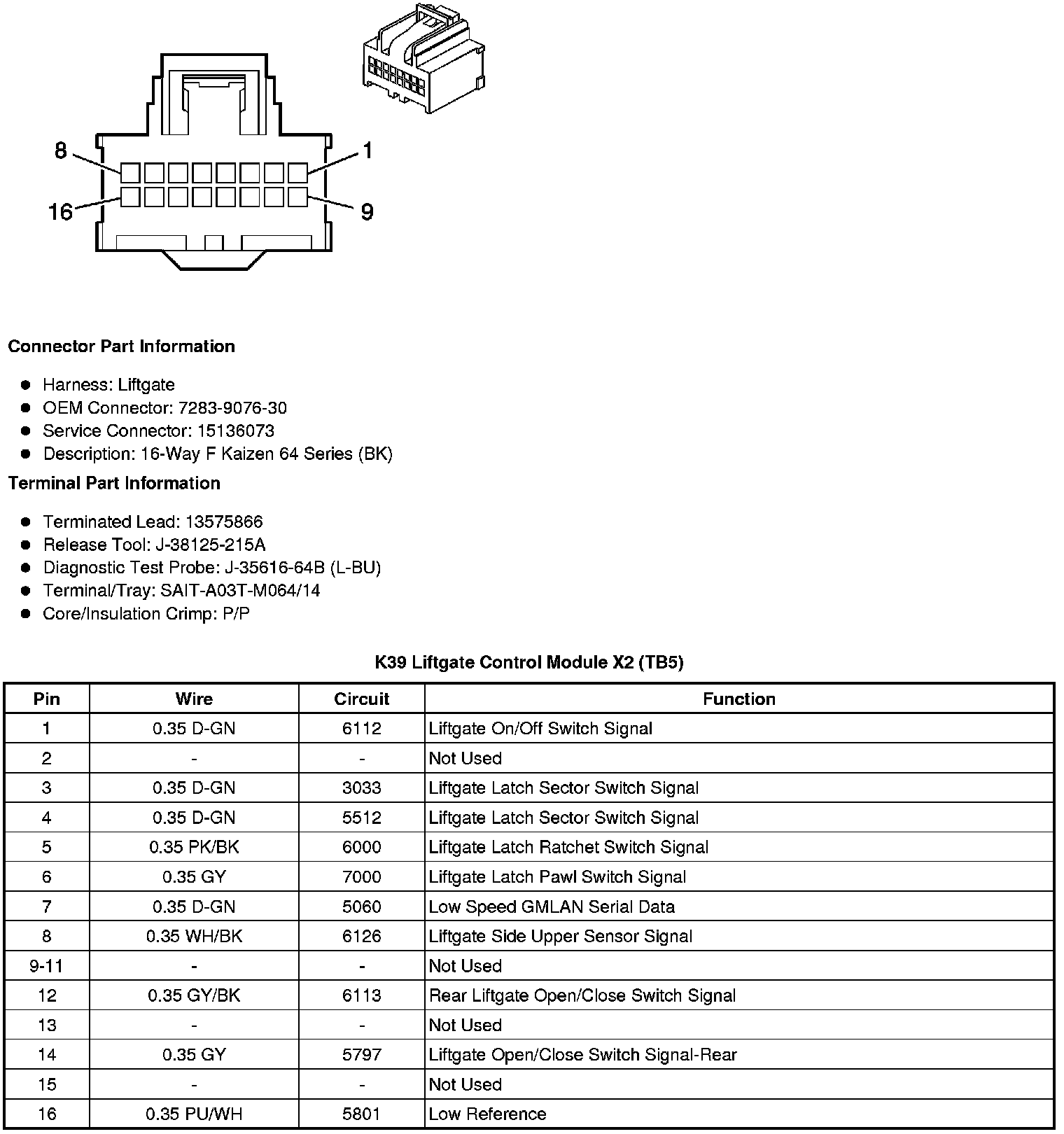 K39 Liftgate Control Module X1 (TB5)