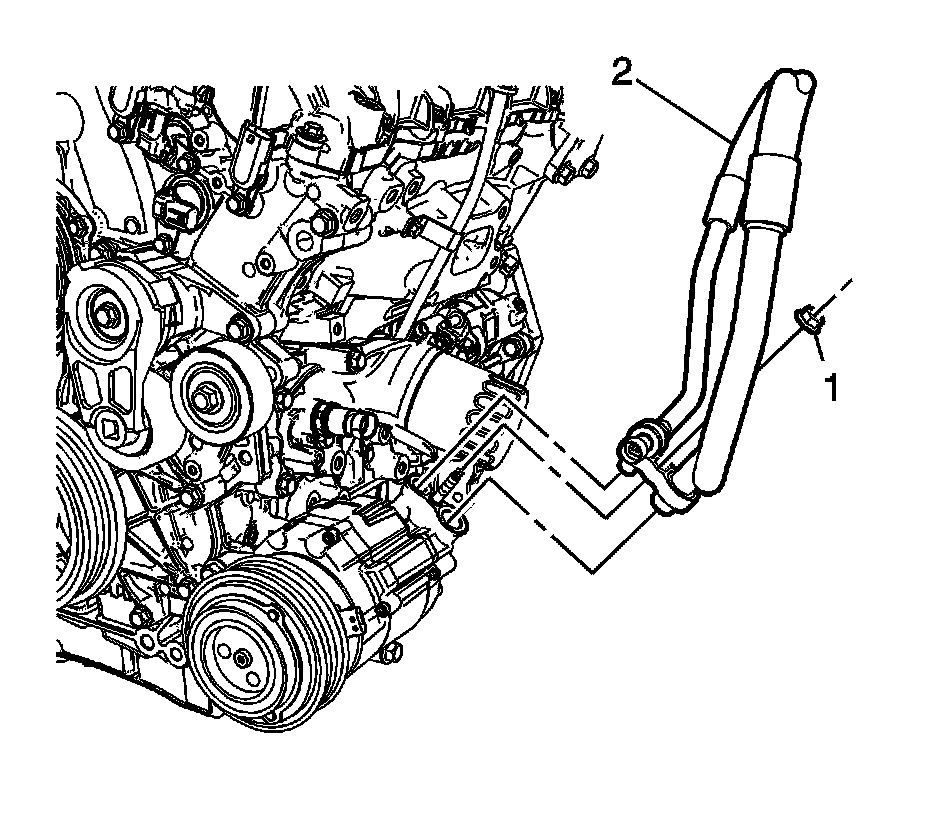27. Remove the compressor hose (2) from the compressor.