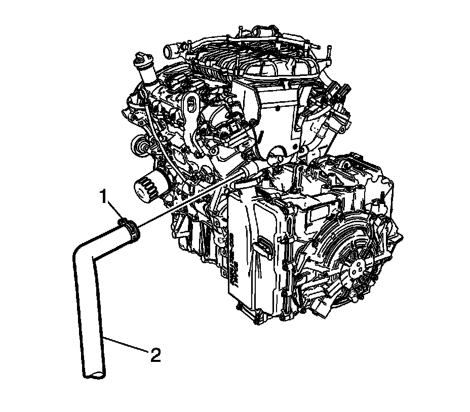 17. Disconnect the radiator outlet hose from the engine. Refer to Radiator Outlet Hose Replacement (LAF) (Radiator Hose)Radiator Outlet Hose Replacement (LF1) (Radiator Hose).