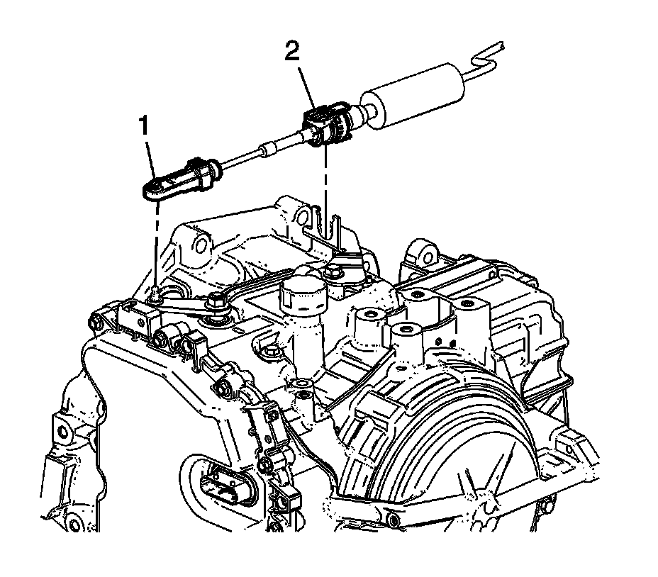 10. Disconnect the range selector cable (2) from the range selector cable bracket.