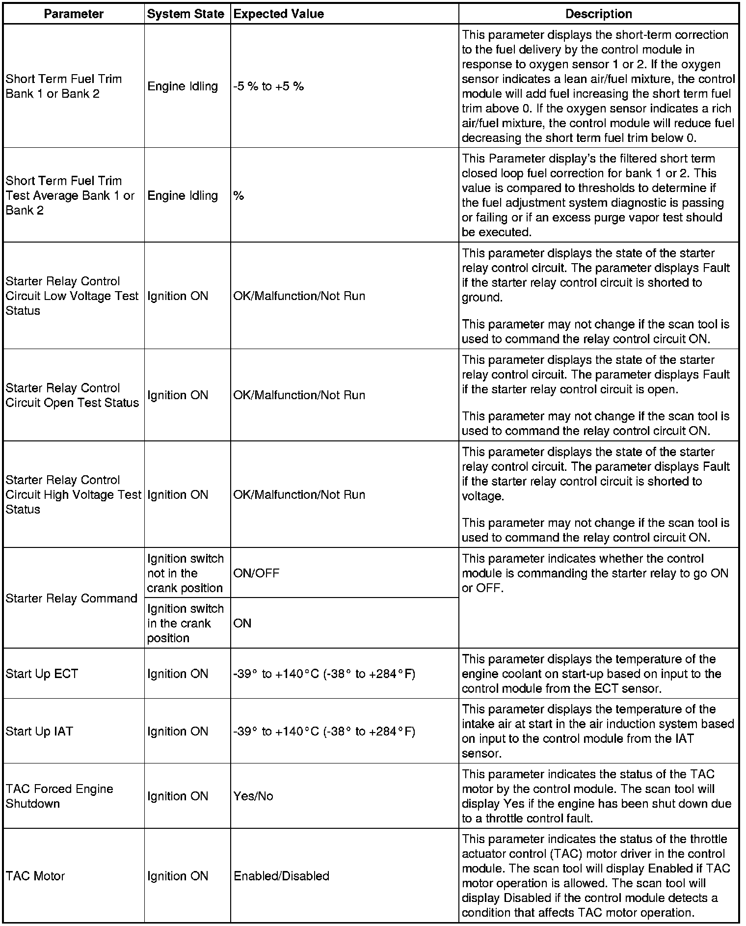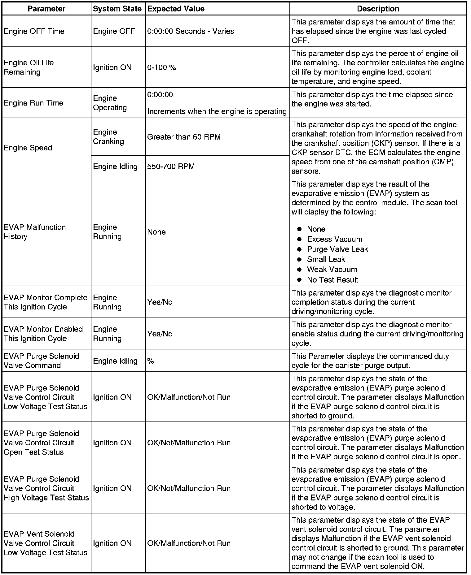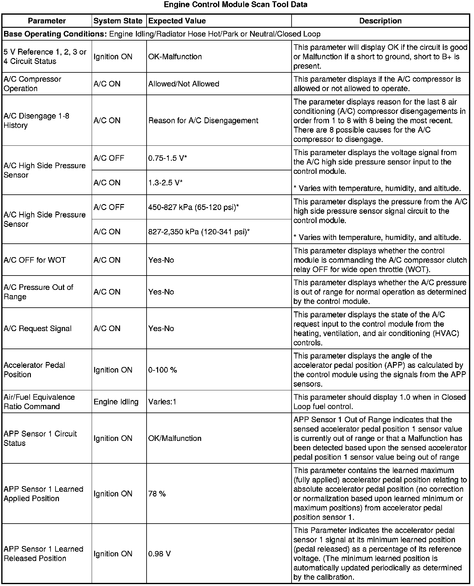 The Engine Control Module Scan Tool Data List contains all engine-related parameters that are available on the scan tool. The list is arranged in alphabetical order. A given parameter may appear in any one of the data lists, and in some cases may appear more than once, or in more than one data list in order to group certain related parameters together.