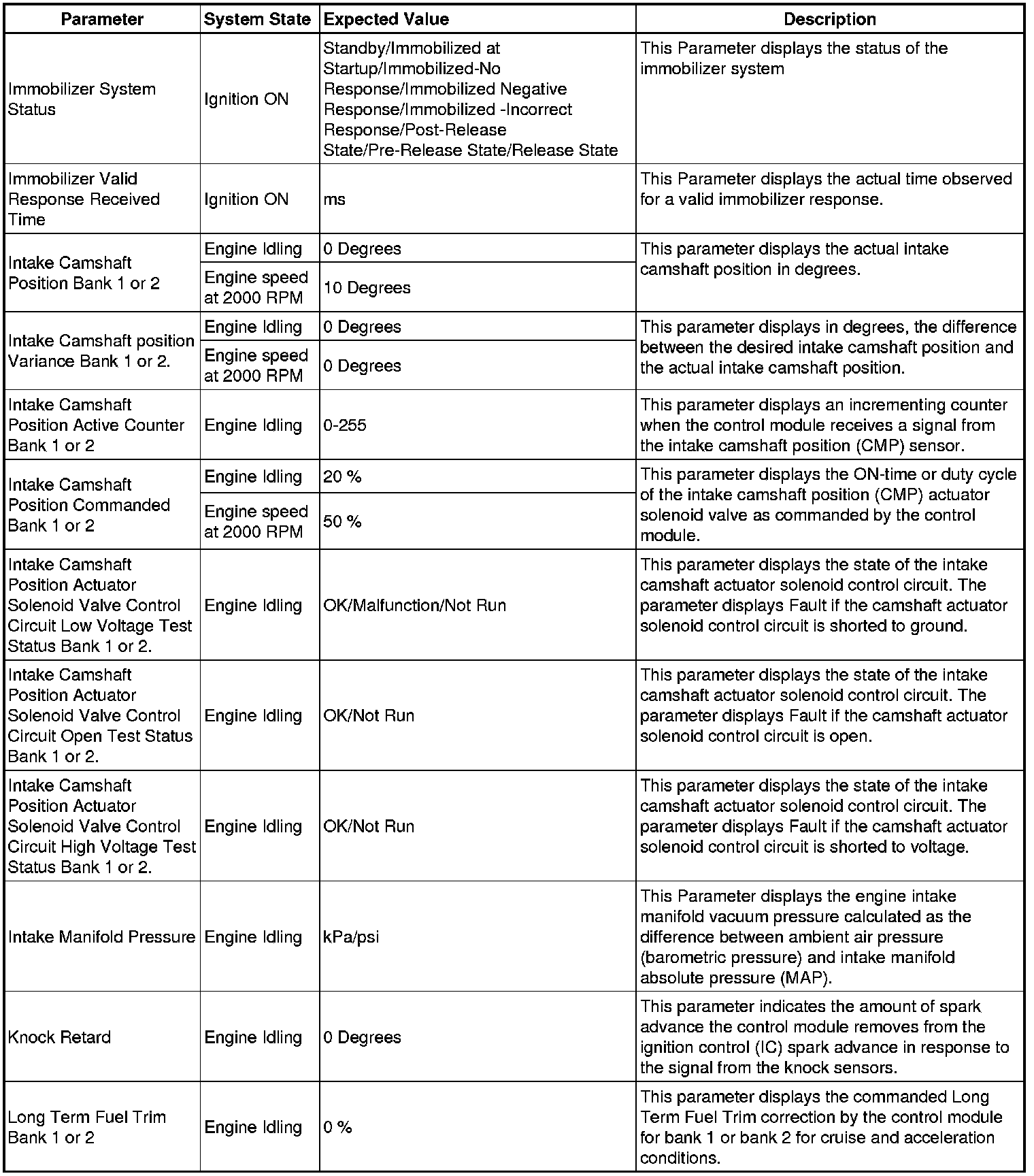 The scan tool values from a properly running engine may be used for comparison with the engine you are diagnosing. The Engine Scan Tool Data List represents values that would be seen on a normally running engine.
