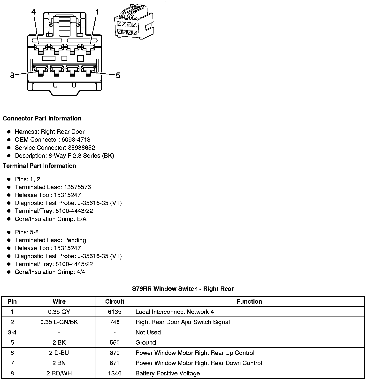 S79RR Window Switch - Right Rear