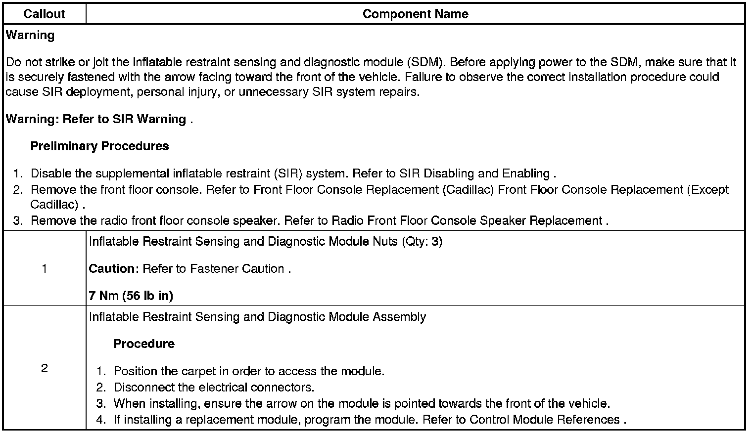 Inflatable Restraint Sensing and Diagnostic Module Replacement