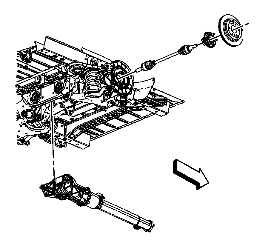 9.Remove the rear wheel bearings, axles, and differential assembly. Refer to Differential Replacement .