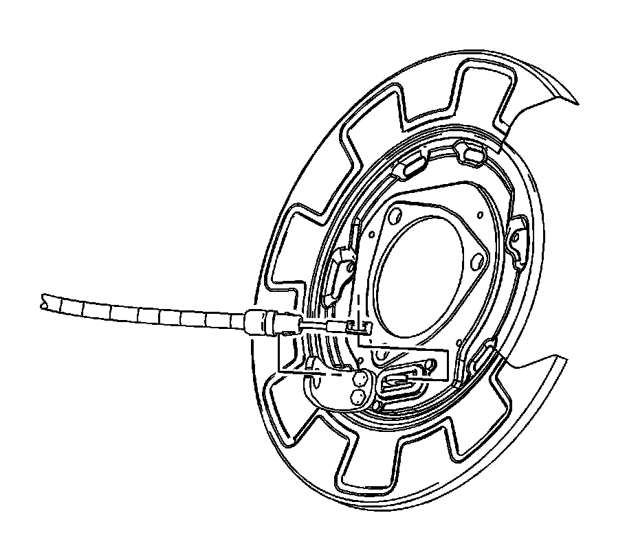 8.Connect the right park brake cable to the brake backing plate.