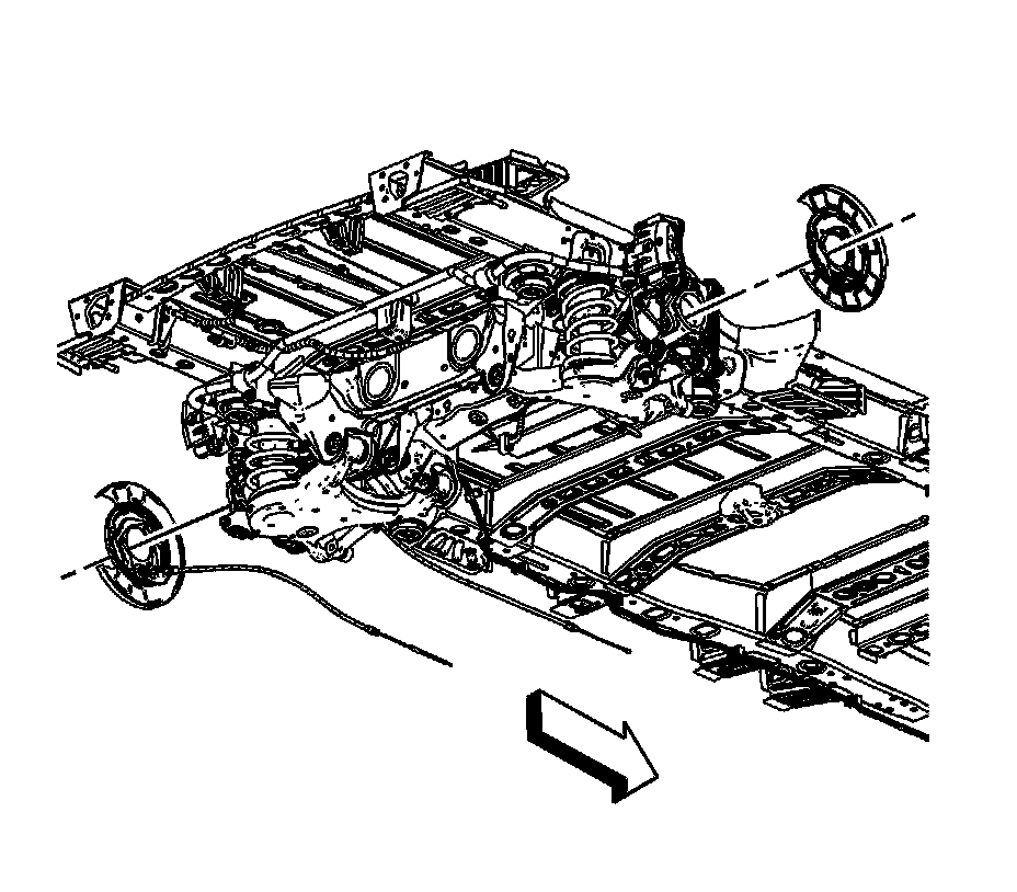10.Remove the park brake cables from the park brake cable equalizer and park brake cable bracket. Refer to Parking Brake Cable Equalizer Replacement .