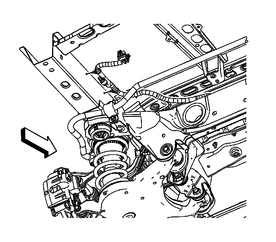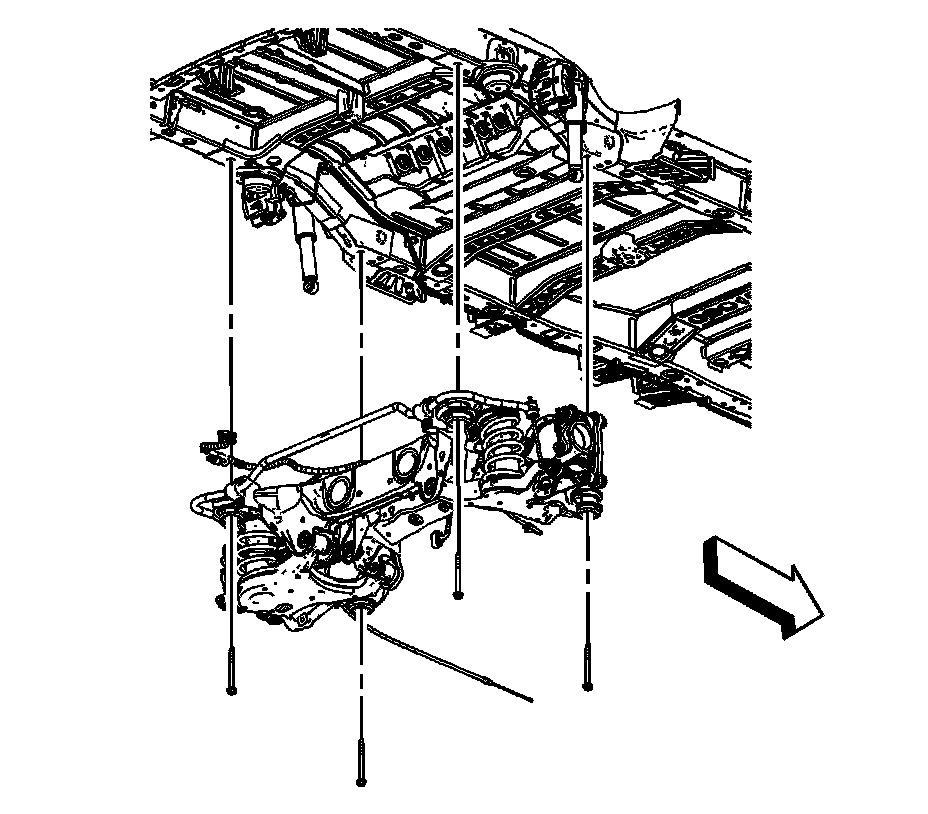18.With the aid of an assistant, carefully lower the rear suspension crossmember or raise the vehicle away from the rear suspension crossmember.