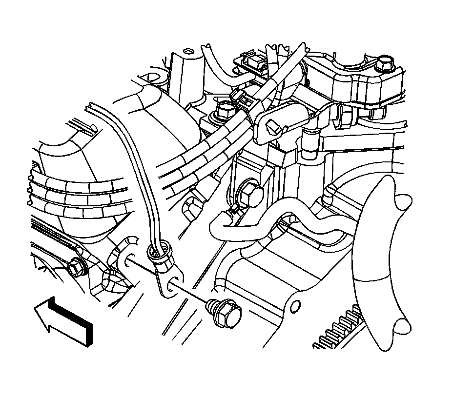 1. Remove the ground strap bolt from the rear of the left cylinder head.