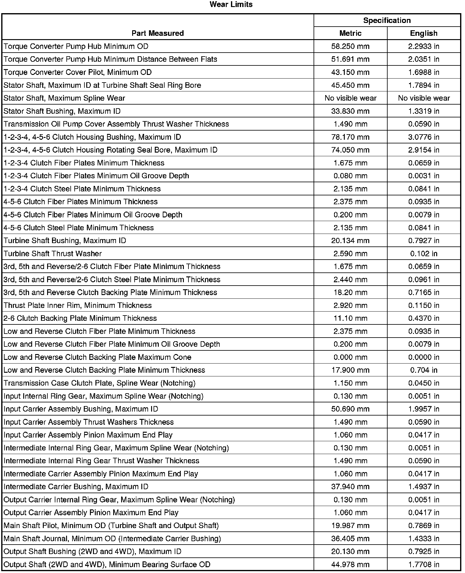 Transmission General Specifications