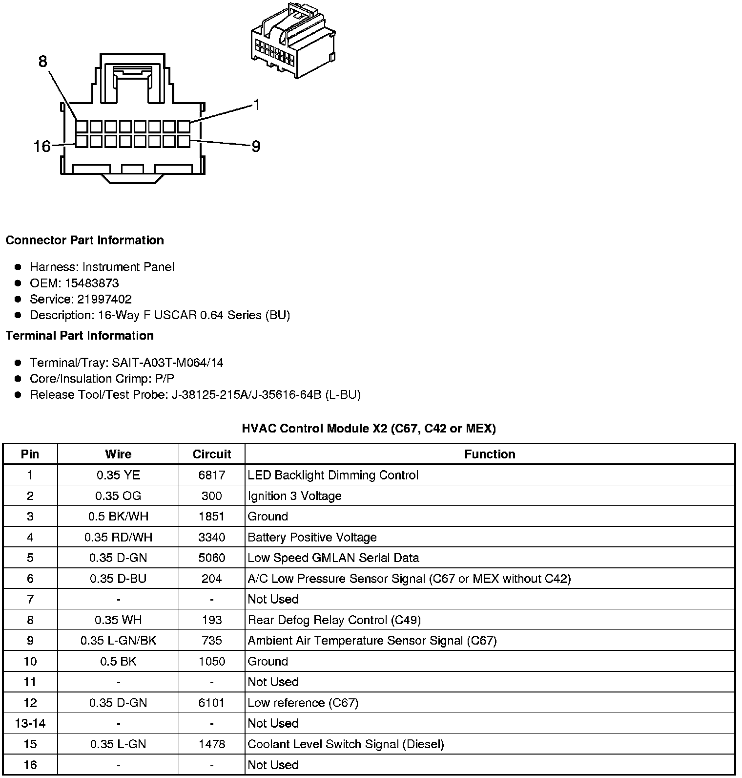 HVAC Control Module X2 (C67, C42 or MEX)