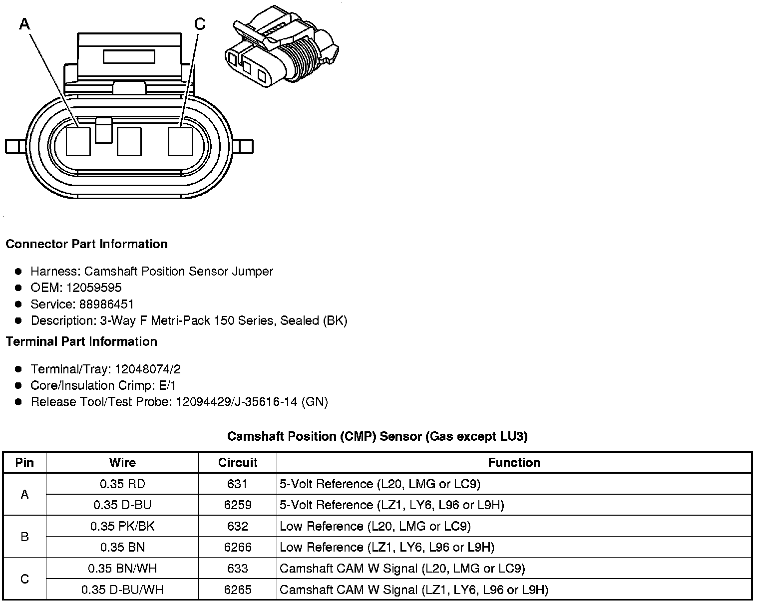 Camshaft Position (CMP) Sensor (Gas except LU3)