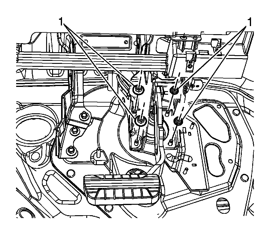 2. Install the brake pedal bracket nuts (1) and tighten to 25 Nm (18 lb ft).
