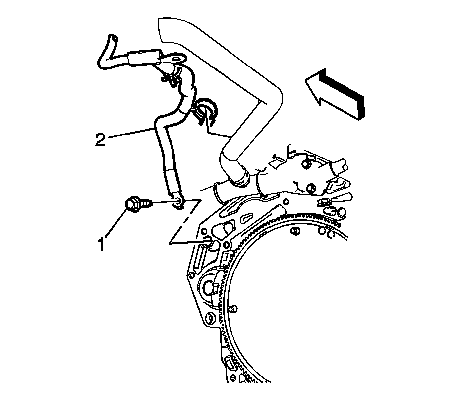 5. Remove the battery negative cable engine ground bolt (1) from the engine block.