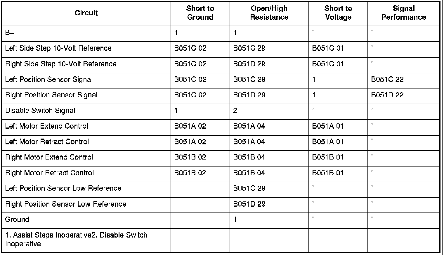 DTC B051C 29:Left Side Assist Step Position Sensor Circuit Too Few Pulses