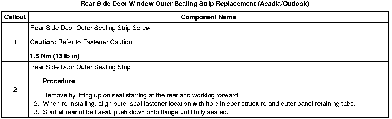 Rear Side Door Window Outer Sealing Strip Replacement (Acadia/Outlook)