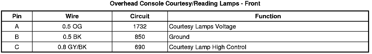Overhead Console Courtesy/Reading Lamps - Front