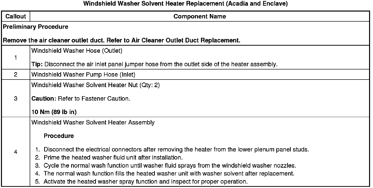 Windshield Washer Solvent Heater Replacement (Acadia and Enclave)
