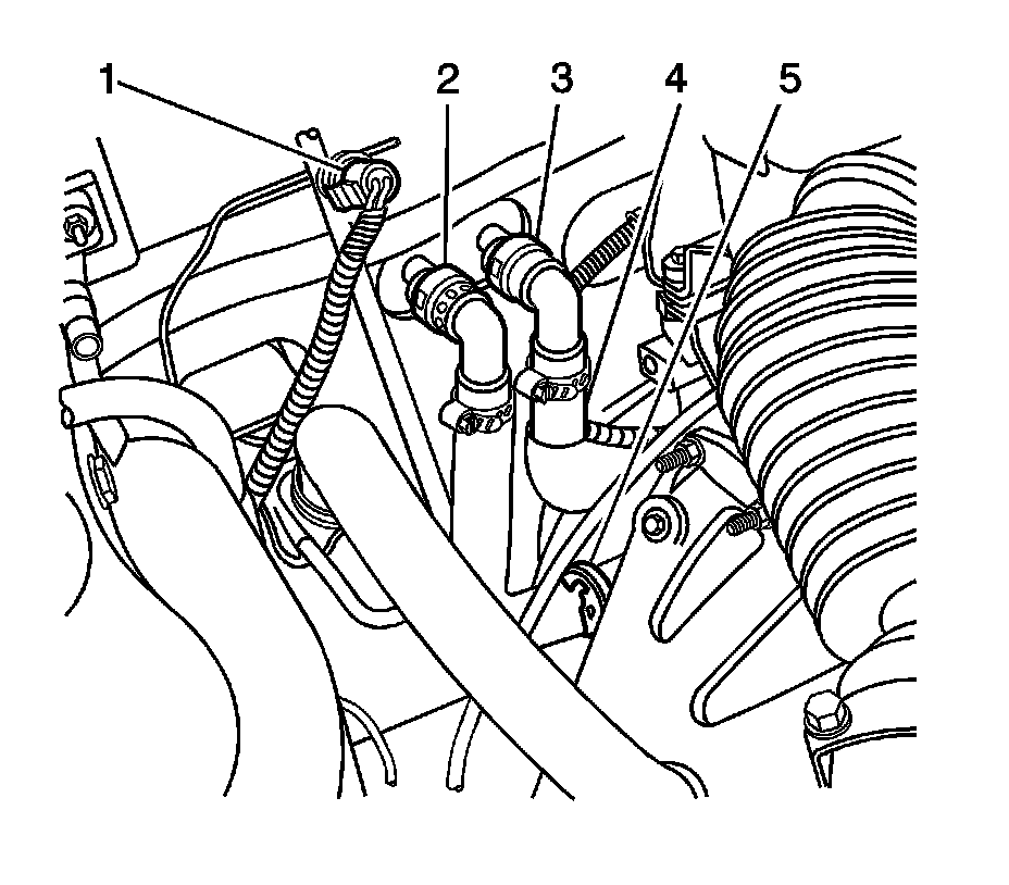 1. Drain the engine coolant. Refer to Cooling System Draining and Filling (Static Fill) Cooling System Draining and Filling (Static Fill)Cooling System Draining and Filling (Vac N Fill) Cooling System Draining and Filling (Vac N Fill).
