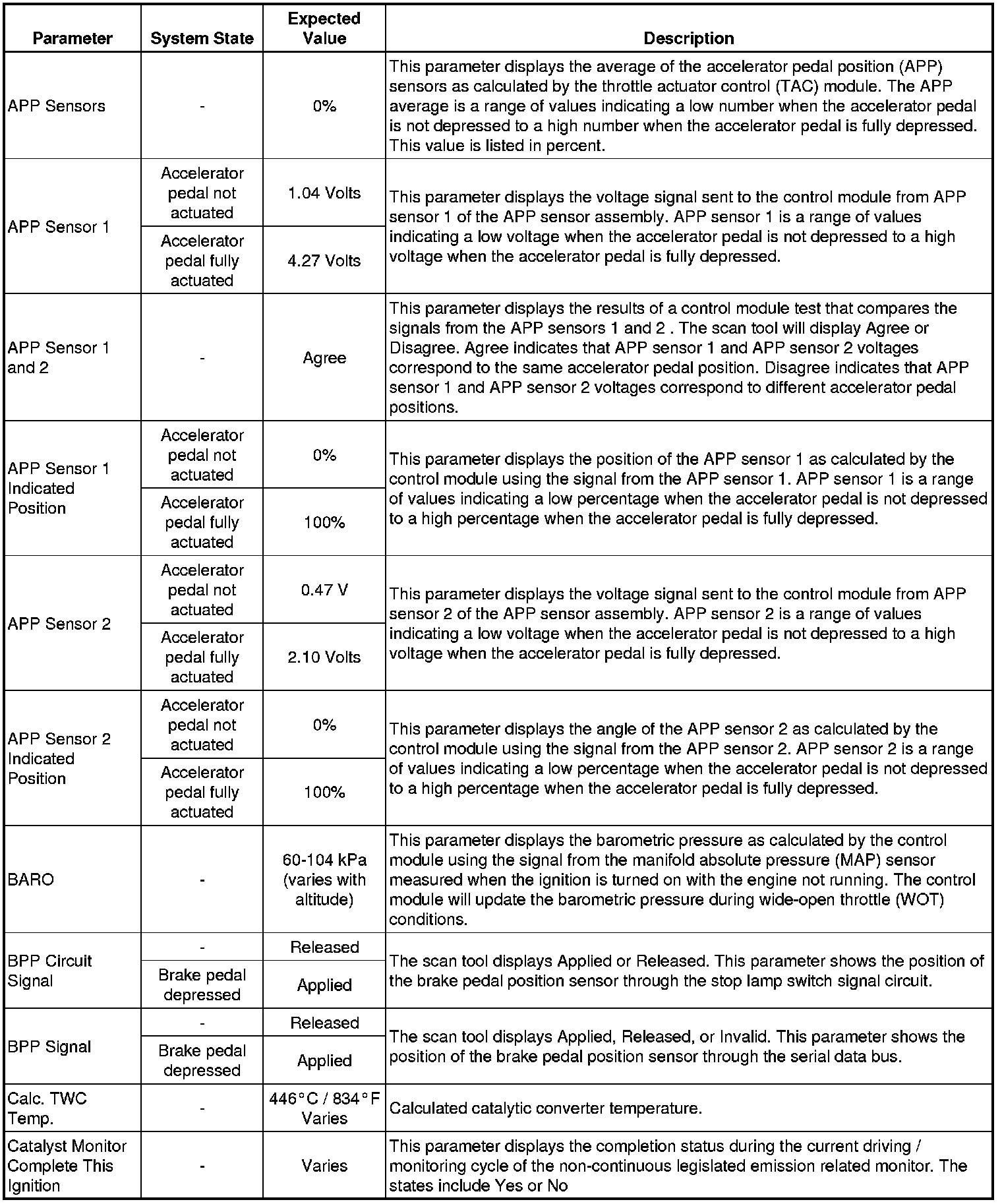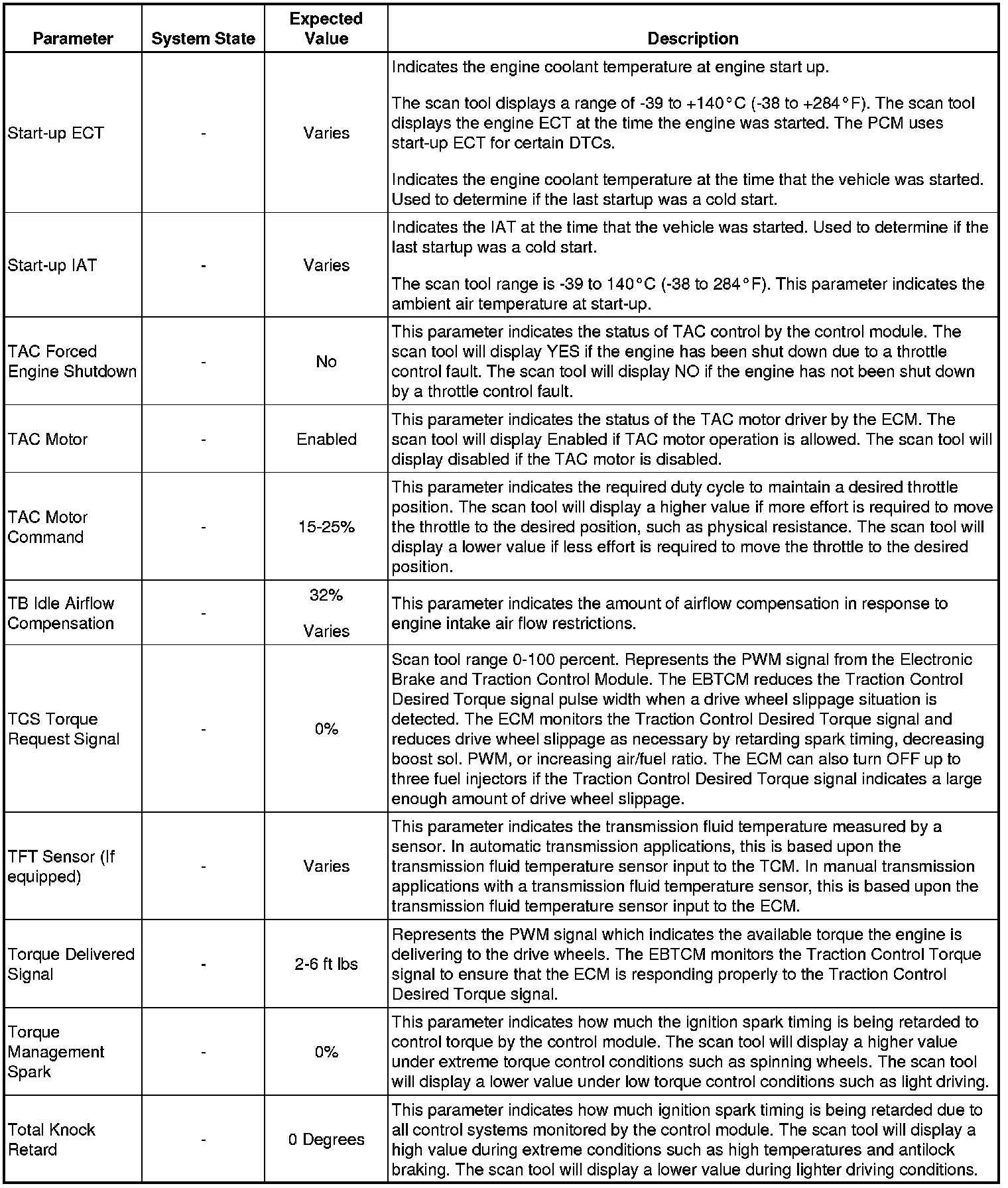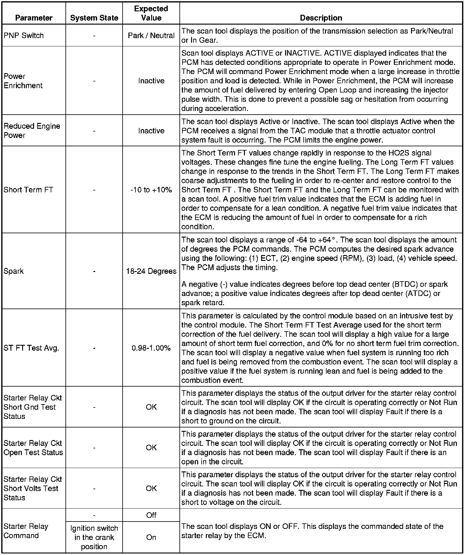 The Engine Control Module Scan Tool Data List contains all engine-related parameters that are available on the scan tool. The list is arranged in alphabetical order. A given parameter may appear in any one of the data lists, and in some cases may appear more than once, or in more than one data list in order to group certain related parameters together.