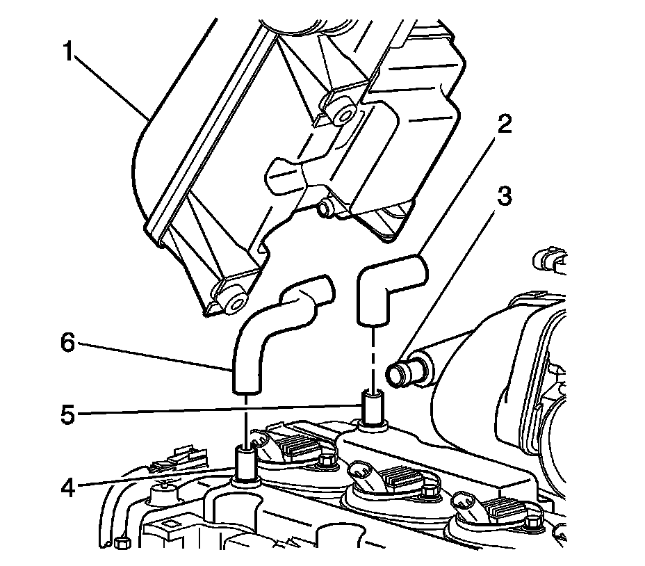 1. Connect the PCV fresh air tube (6) to the air cleaner resonator (1).