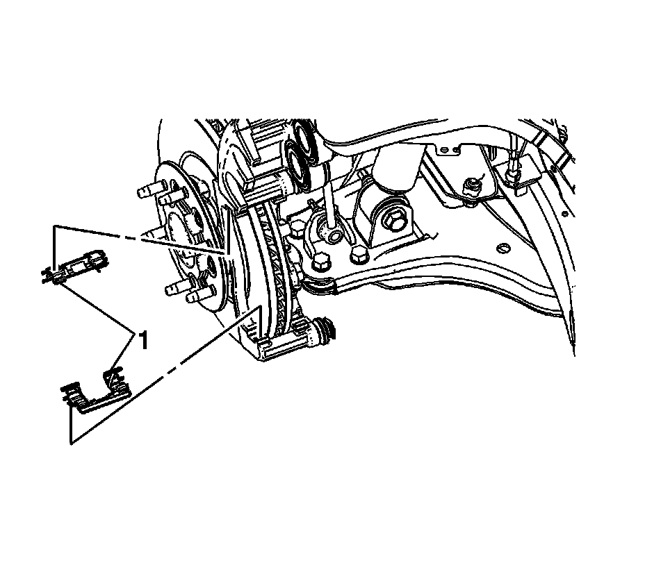 Caution: Support the brake caliper with heavy mechanic wire, or equivalent, whenever it is separated from its mount and the hydraulic flexible brake hose is still connected. Failure to support the caliper in this manner will cause the flexible brake hose to bear the weight of the caliper, which may cause damage to the brake hose and in turn may cause a brake fluid leak.