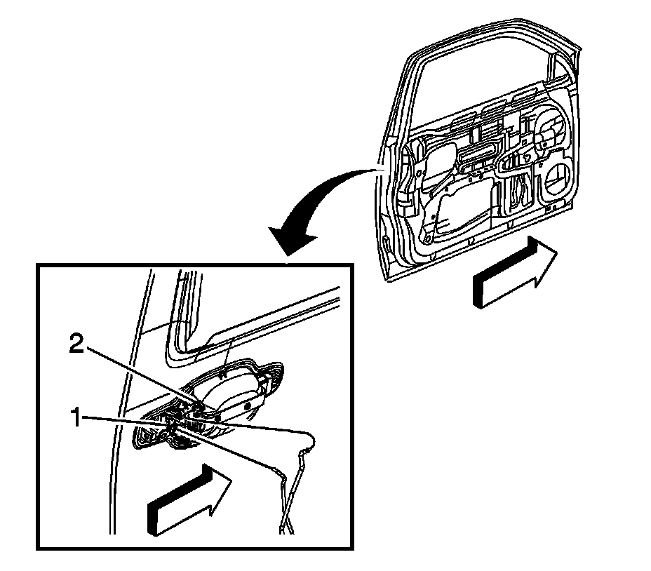 1. Remove the front door trim panel. Refer to Front Side Door Trim Panel Replacement Front Side Door Trim Panel Replacement.