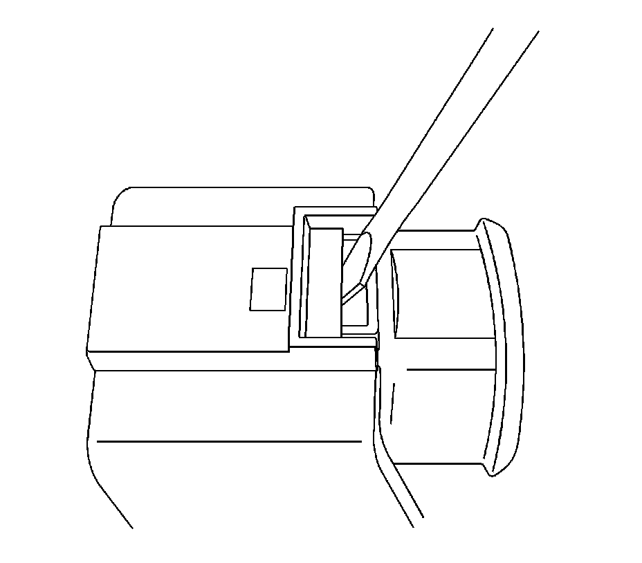 2. Push down the locking tab to release the connector. The small flat-bladed tool may need to be pushed down and angled back slightly to depress the locking tab. Pull on the connector body while releasing the locking tab to disconnect the connector.