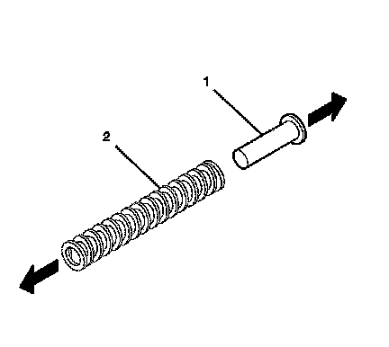 3. Install the tilt spring (1) onto the steering column housing support (2) and onto the steering column tilt head housing by using the following procedure: