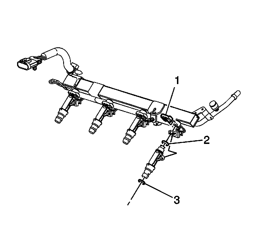 1. Lightly lubricate the NEW fuel injector O-ring seals (2 and 3) with mineral oil GM P/N 9981704.