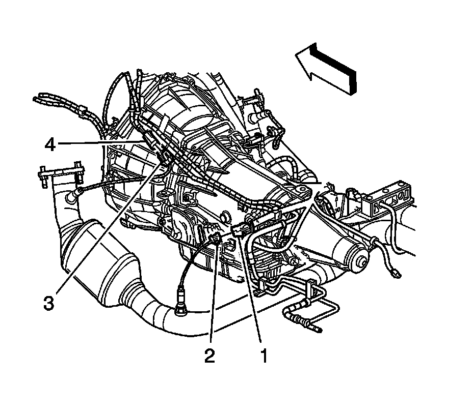 3. Disconnect the HO2S electrical connector (2) from the engine wiring harness electrical connector (1).