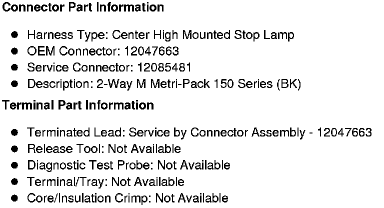 Center High Mounted Stop Lamp (CHMSL) (Passenger or Cargo)