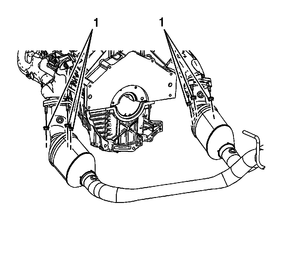 7. If replacing the catalytic converter pipe, remove the oxygen sensors as necessary. Refer to Heated Oxygen Sensor Replacement - Bank 1 Sensor 1 Heated Oxygen Sensor Replacement - Bank 1 Sensor 1.