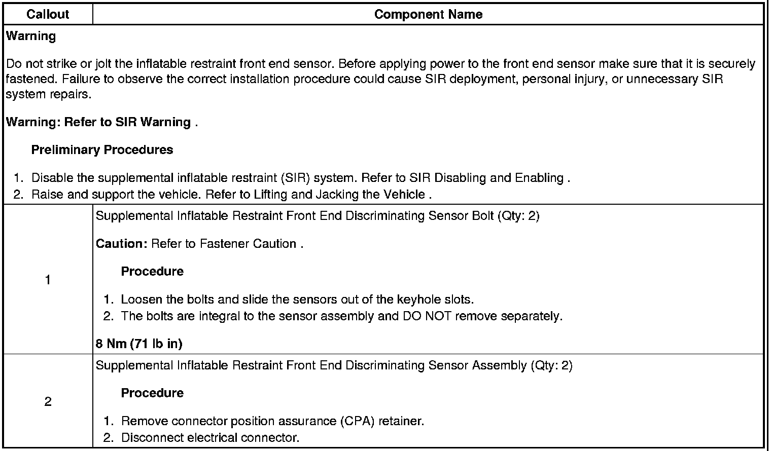 Inflatable Restraint Front End Sensor Replacement (1500)