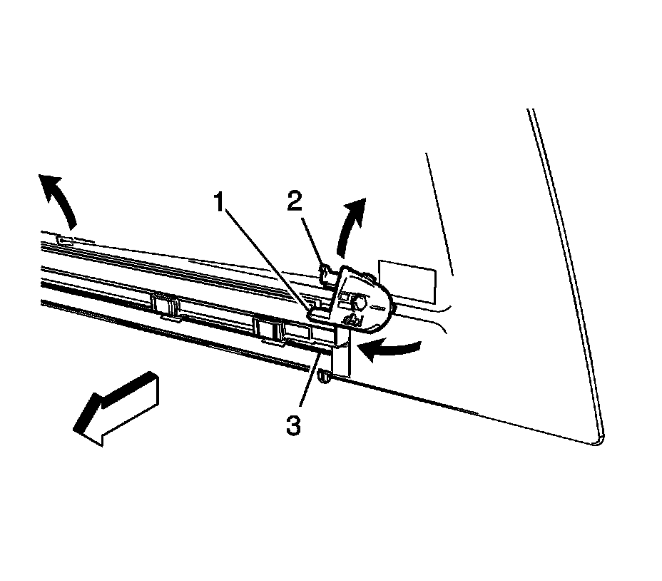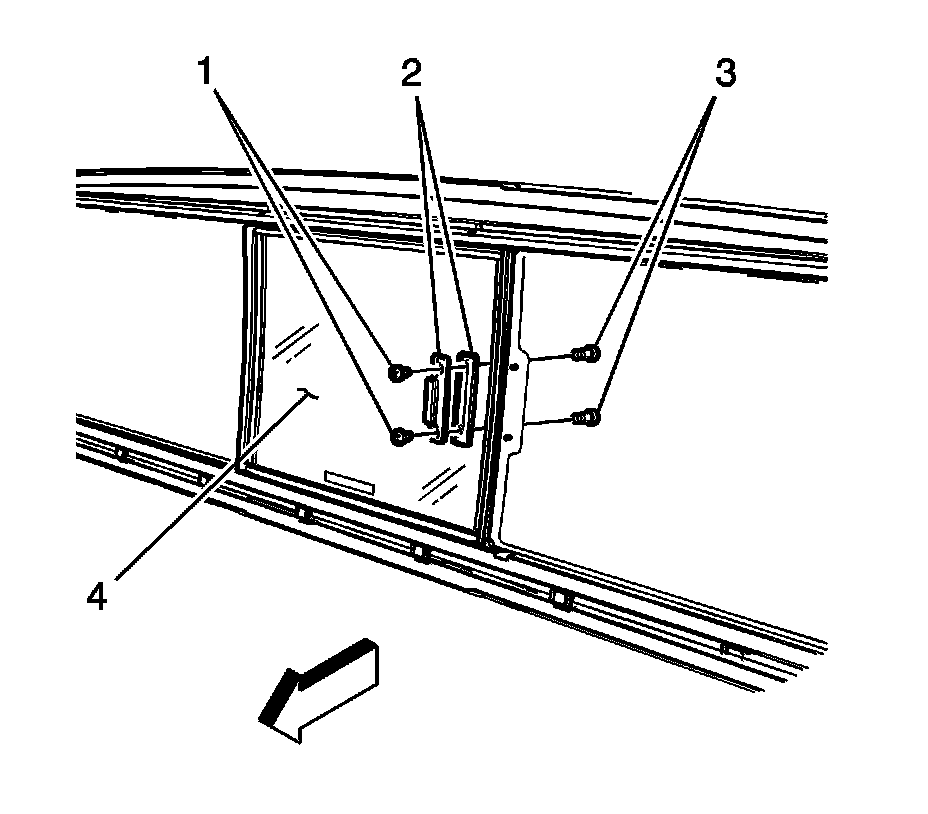 Note: Use a suitable tool to lift upward on the rear sliding window stops (1) to remove.