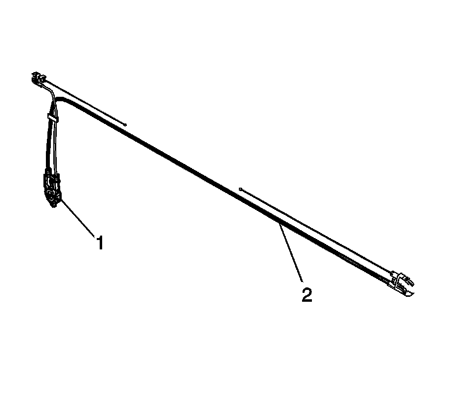 10. Remove the regulator (1) and cables (2) from the vehicle.