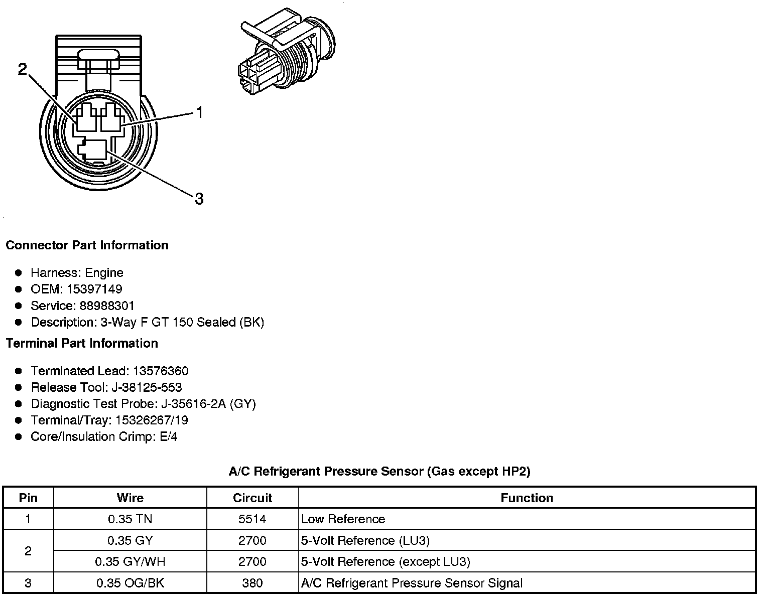 A/C Refrigerant Pressure Sensor (Gas except HP2)