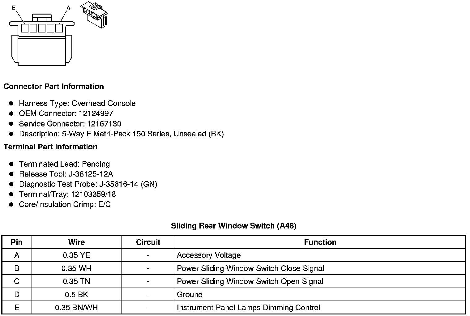 Sliding Rear Window Switch (A48)