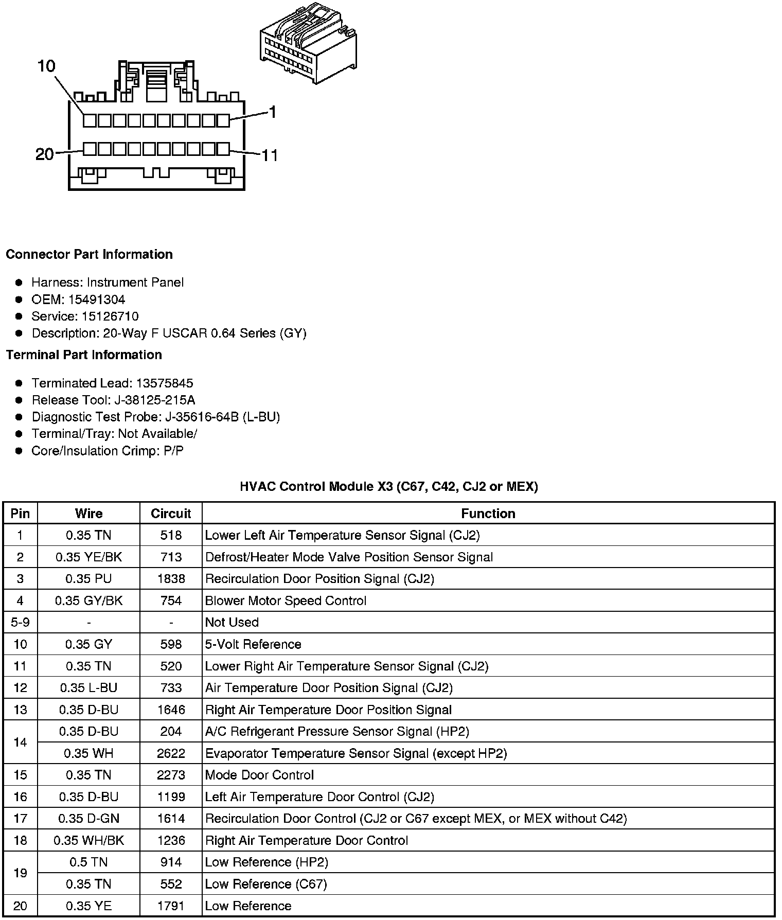 HVAC Control Module X3 (C67, C42, CJ2 or MEX)