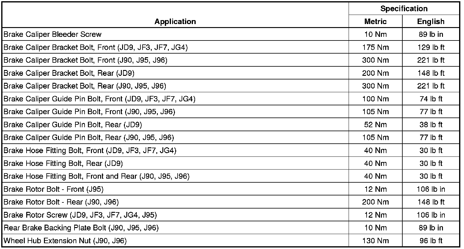 Fastener Tightening Specifications